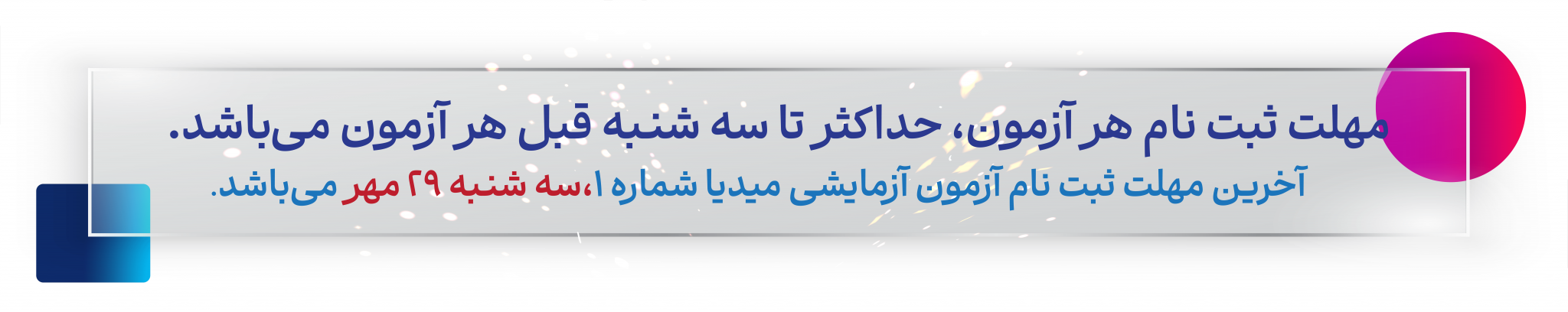 مدت پاسخگویی به دفترچه 115 دقیقه می باشد . هزینه هر کنکور آزمایشی آنلاین : 250.000 تومان مهلت ثبت نام هر آزمون تا سه شنبه پیش از تاریخ برگزاری پیش از ثبت نام به توضیحات شماره 5 و 6 دقت کنید